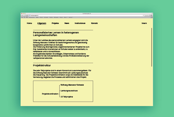 Diese Website entstand im Auftrag der Stiftung Mercator Schweiz, welche dieses Förderprojekt organisierte. Zehn Teilprojekte erhielten finanzielle Unterstützung. Diese Arbeit entstand in Zusammenarbeit Rob&Rose in Zürich.