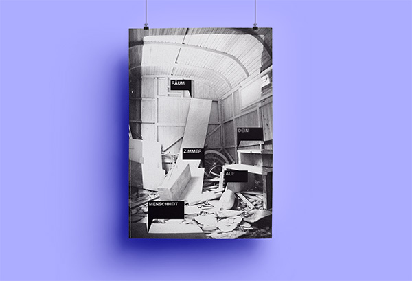 Während des Studiums in Luzern habe ich das Plakat "Räum dein Zimmer auf, Menschheit!" für die öffentliche Plakatausstellung "Denkzettel" der APG gestaltet. Das Plakat wurde beim «Festival International de l'affiche et du Graphisme de Chaumont» ausgestellt.