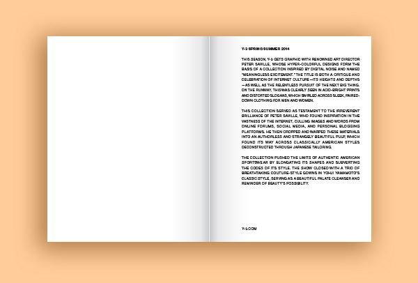 Im Lookbook von Y-3 wird die Frühlings- und Sommerkollektion 2014 von Yohji Yamamoto vorgestellt. Es entstand während meiner Tätigkeit bei Greige in Berlin.